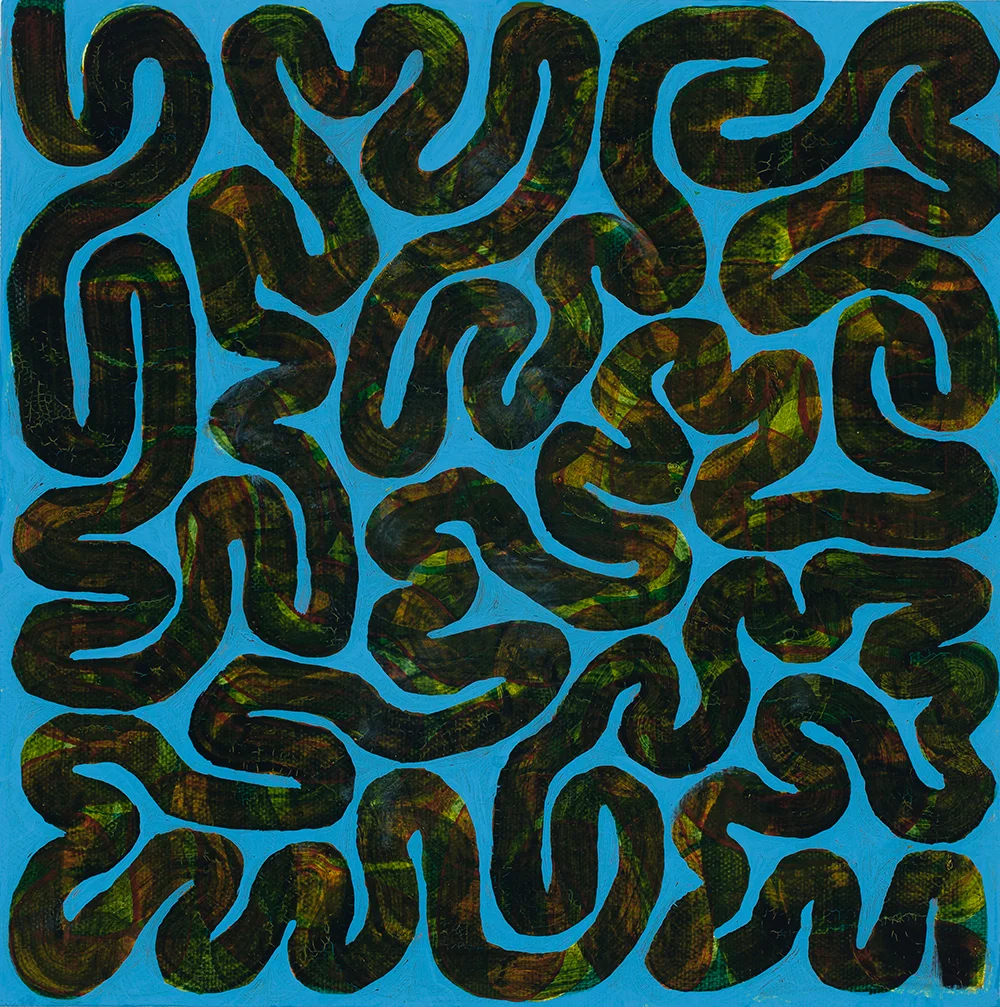 Kelly McConnell, Torquēre DNA 1, acrylic on vinyl (2013–2014), 5' x 4'