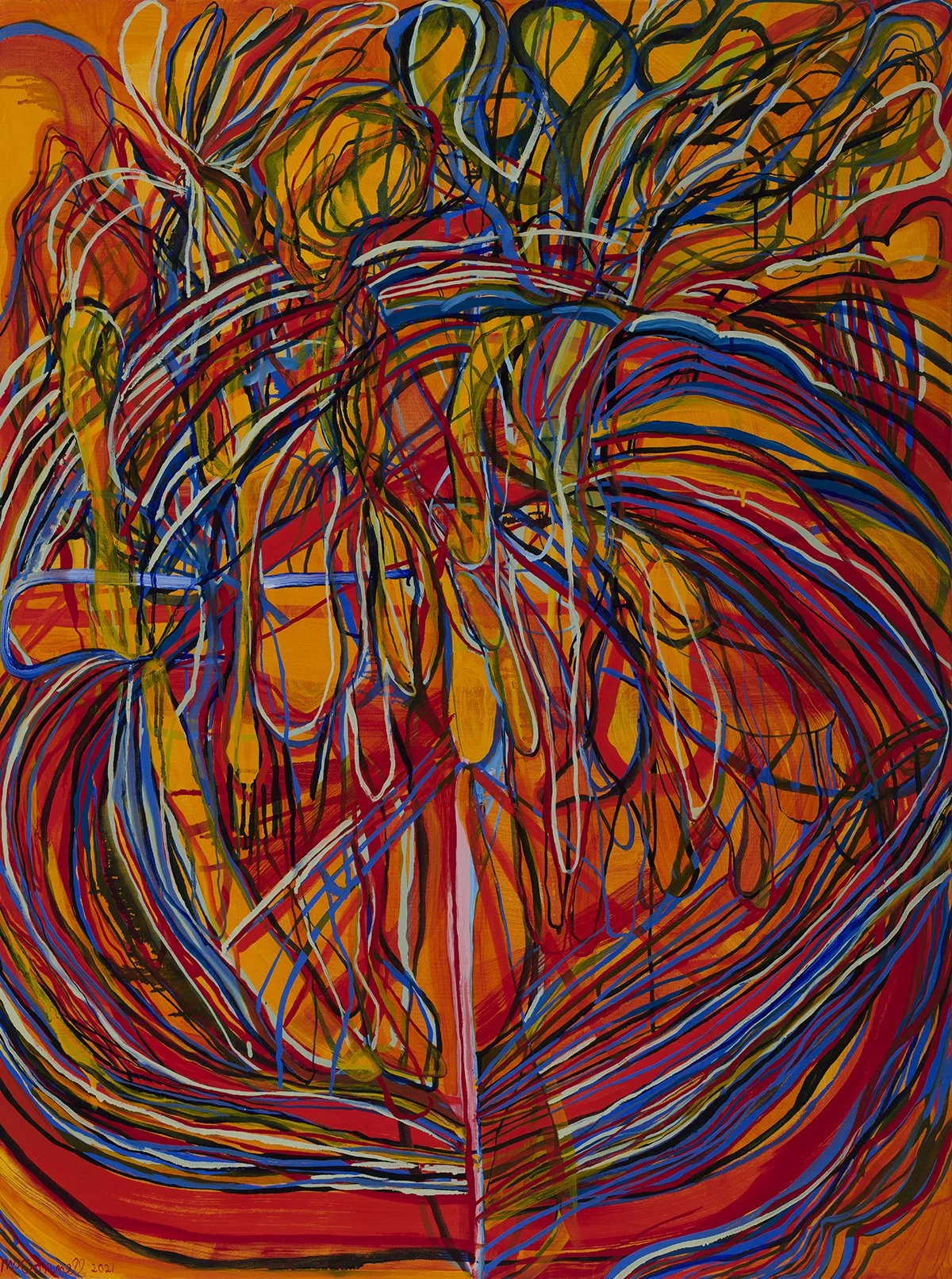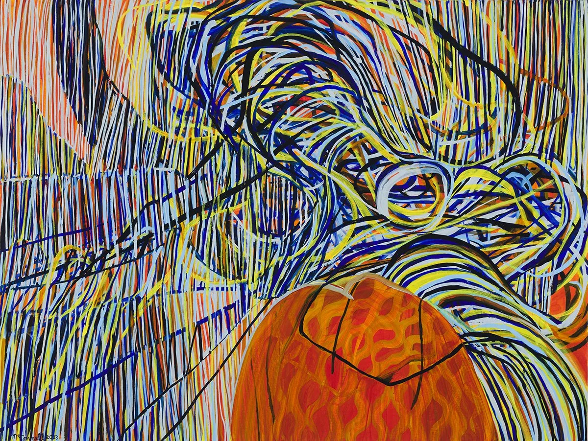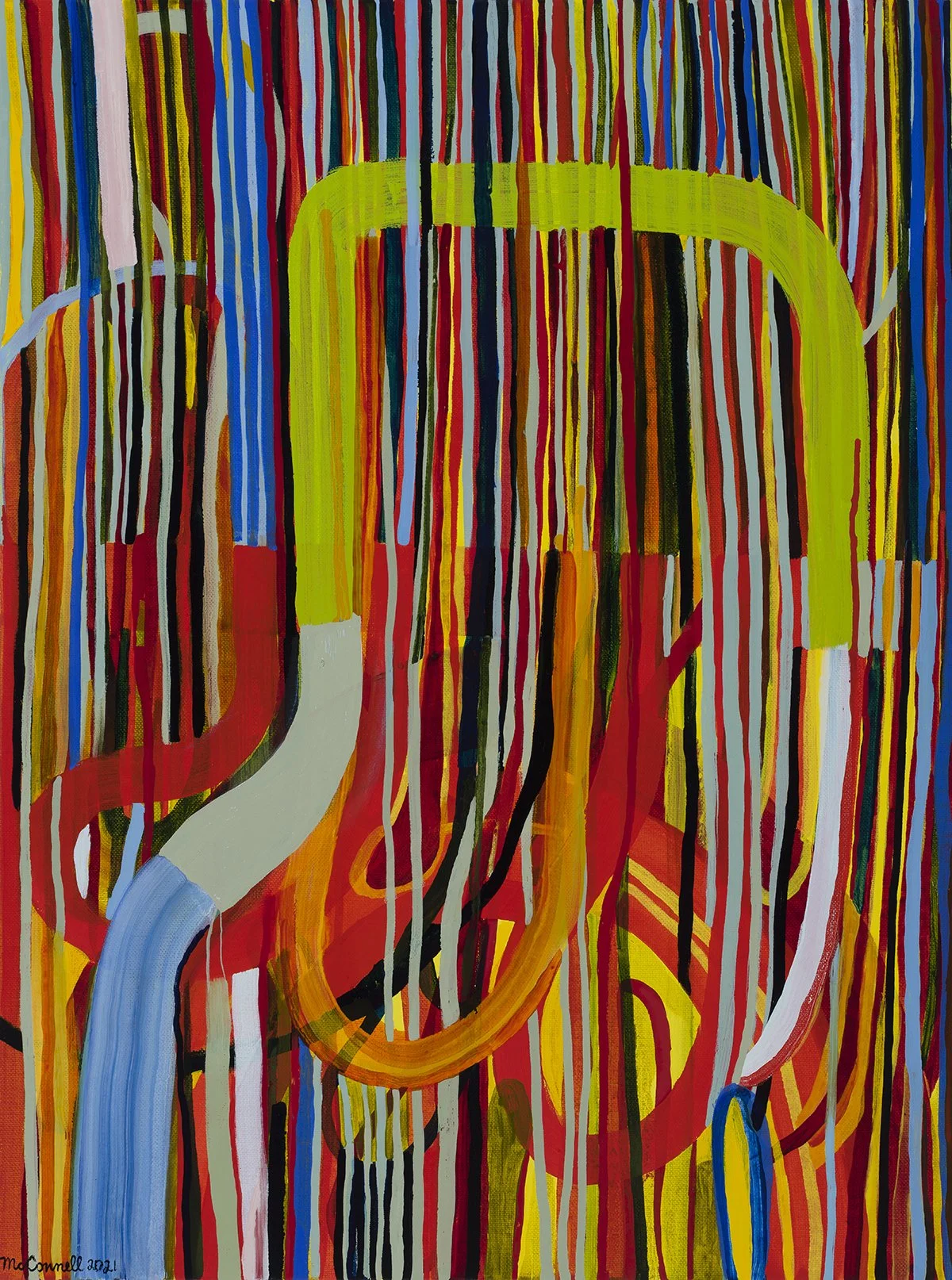 Kelly McConnell, Feelings Extruder, Oil on Canvas (2021), 3’x 4’