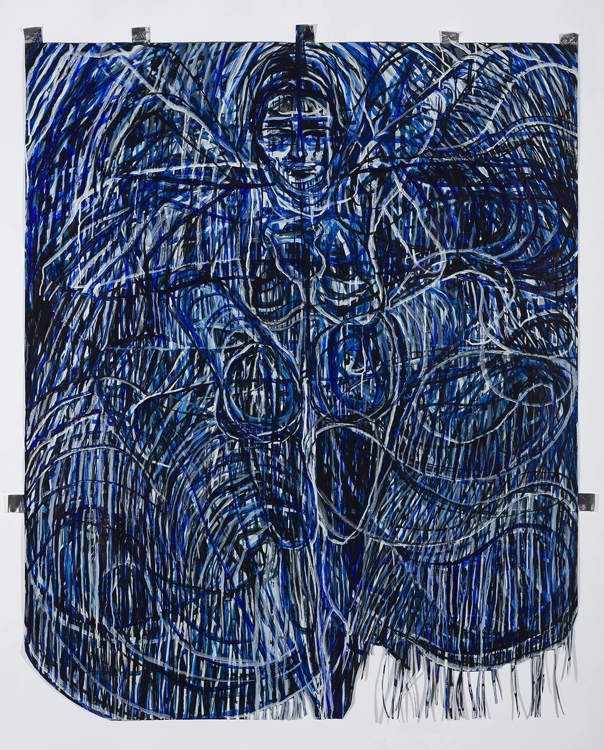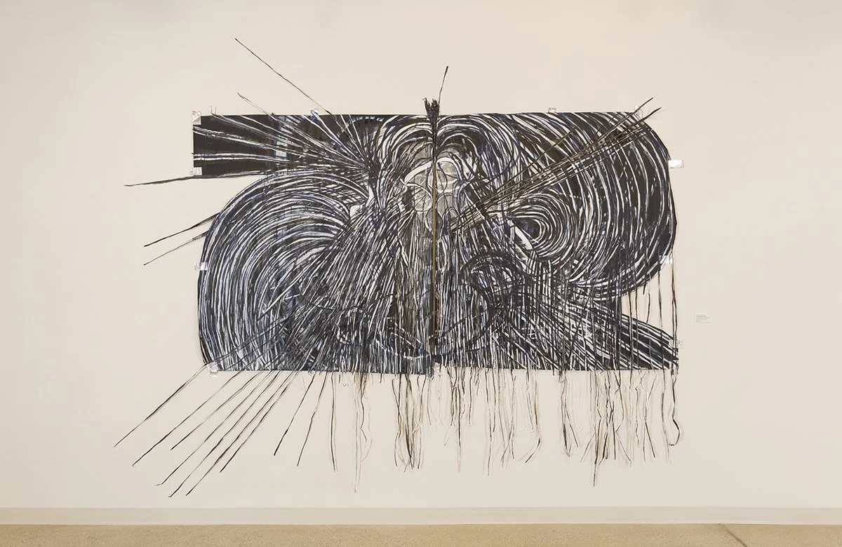 Kelly McConnell, Experience With Air, Canson Paper, Acrylic Media, Sumi Ink, Duct Tape, Chalk (2024), 6’x 4’11”