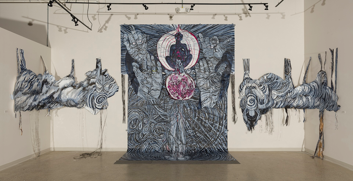 Kelly McConnell, Jewel In The Mud, Canson Paper, Acrylic Media, Sumi Ink, Duct Tape (2020), Approx. 5’x6’